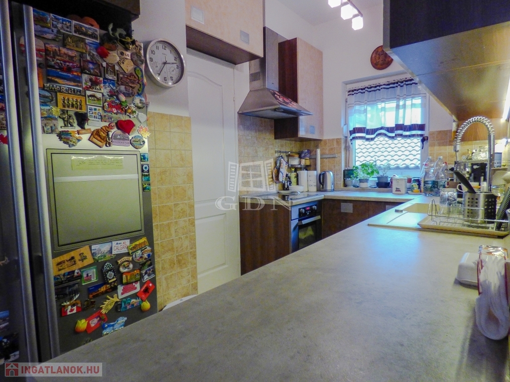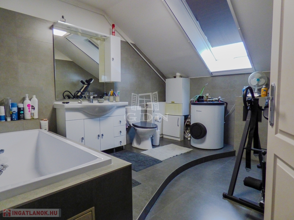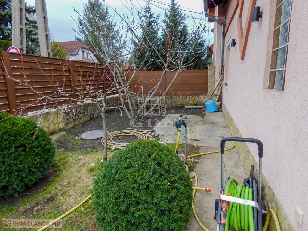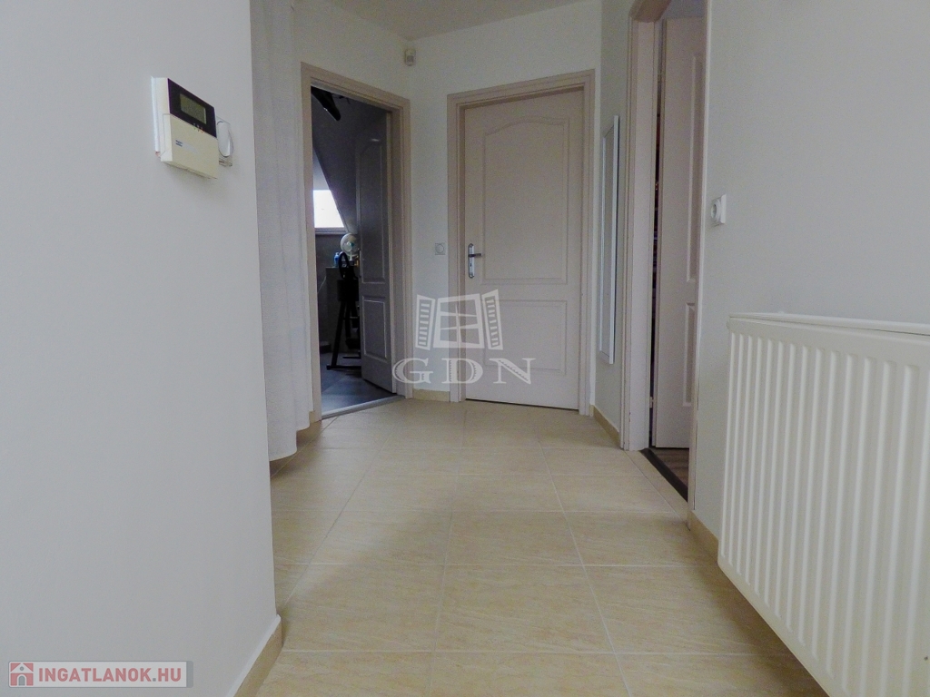 Dunakeszin, Alag város részen, kertvárosi környezetben, 490 nm-es sarok telken lévő, 2002-ben és 2007-ben épült, teljeskörűen felújított (új tető), vasbeton födémes (a kis lakrész fafödémes), két szintes, szigetelt (8 cm dryvit), bruttó 170 nm-es, 6+1 fél szobás, Keleti fekvésű, 2 GENERÁCIÓS (külön albetétes), gáz cirkó fűtéses (radiátoros hőleadással), központi klímás, műanyag thermo nyílászárós (redőnnyel, rovarhálóval), vízlágyítóval, riasztóval, kamerával felszerelt, rugalmasan birtokba vehető, családi ház eladó.