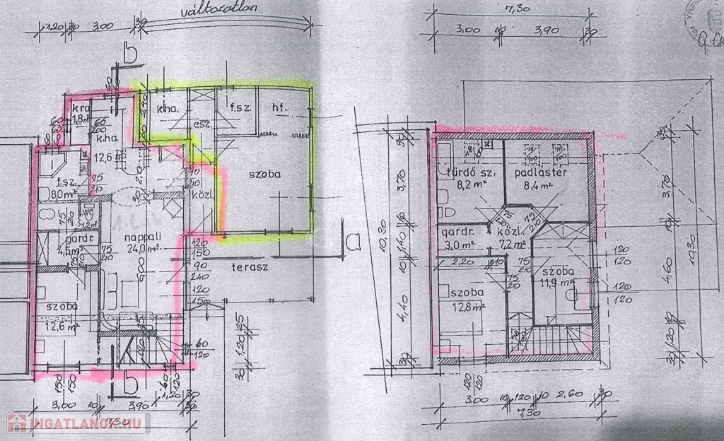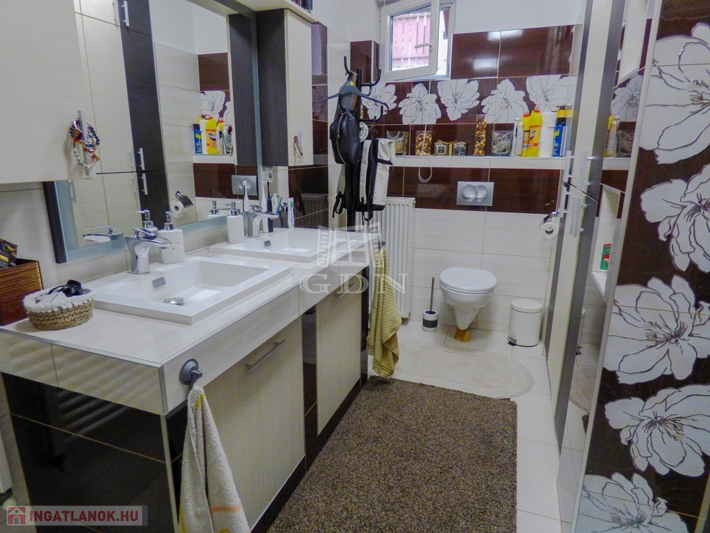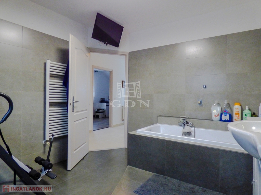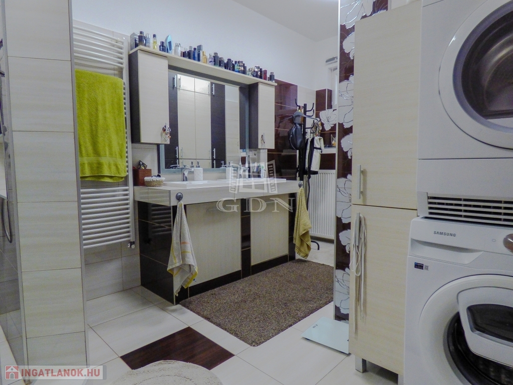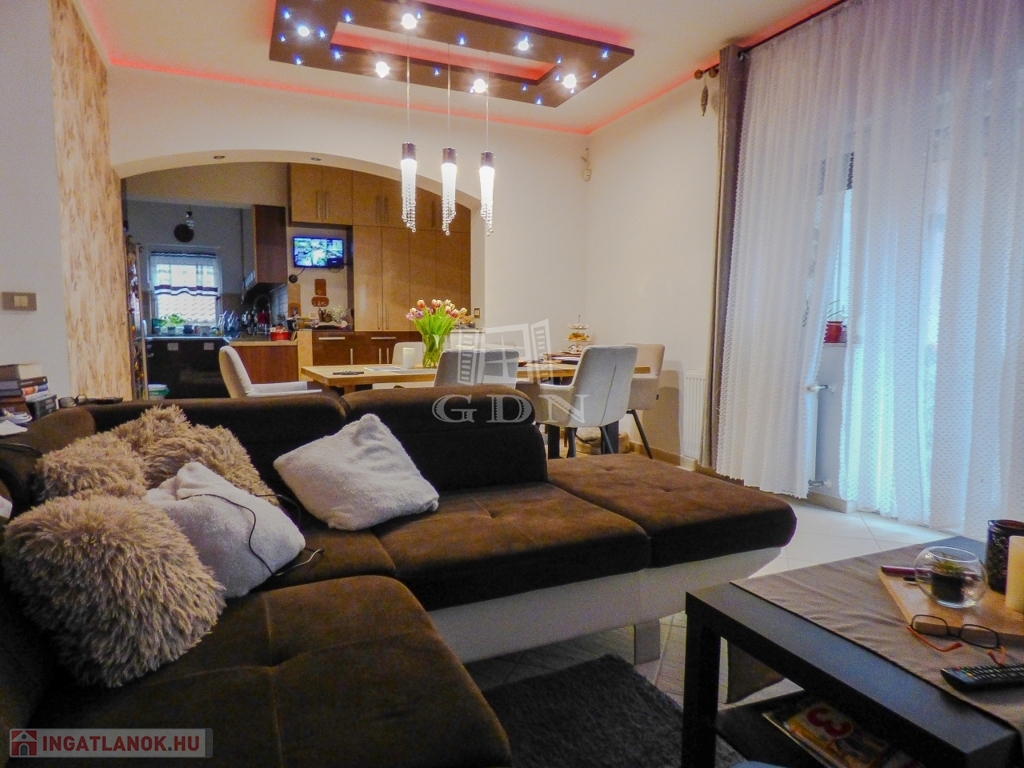 Dunakeszin, Alag város részen, kertvárosi környezetben, 490 nm-es sarok telken lévő, 2002-ben és 2007-ben épült, teljeskörűen felújított (új tető), vasbeton födémes (a kis lakrész fafödémes), két szintes, szigetelt (8 cm dryvit), bruttó 170 nm-es, 6+1 fél szobás, Keleti fekvésű, 2 GENERÁCIÓS (külön albetétes), gáz cirkó fűtéses (radiátoros hőleadással), központi klímás, műanyag thermo nyílászárós (redőnnyel, rovarhálóval), vízlágyítóval, riasztóval, kamerával felszerelt, rugalmasan birtokba vehető, családi ház eladó.