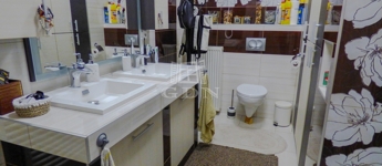 A nagyobbik lakrészen amerikai konyhás (kamrával), étkezős nappali, 4 hálószoba, 2 fürdőszoba, wc, infraszauna, gardrób, nagy terasz lett kialakítva két szinten.