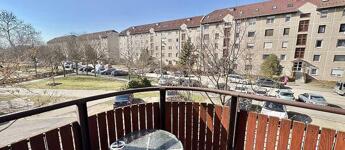 A nappaliból egy 4 m²-es erkélyre léphetünk ki, ahonnan parkos, zöld környezetre nyílik kilátás, ami nyugalmat és csendet biztosít.
