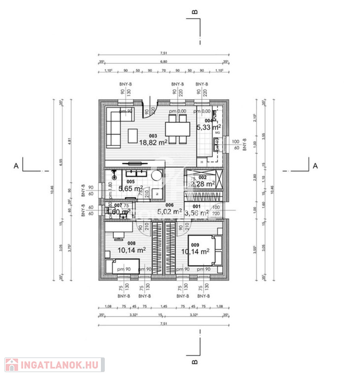 - A hirdetésben szereplő ingatlan mintaterv, amely akár egyedi elképzelések alapján módosítható (terasz, helyiségek elhelyezkedése)