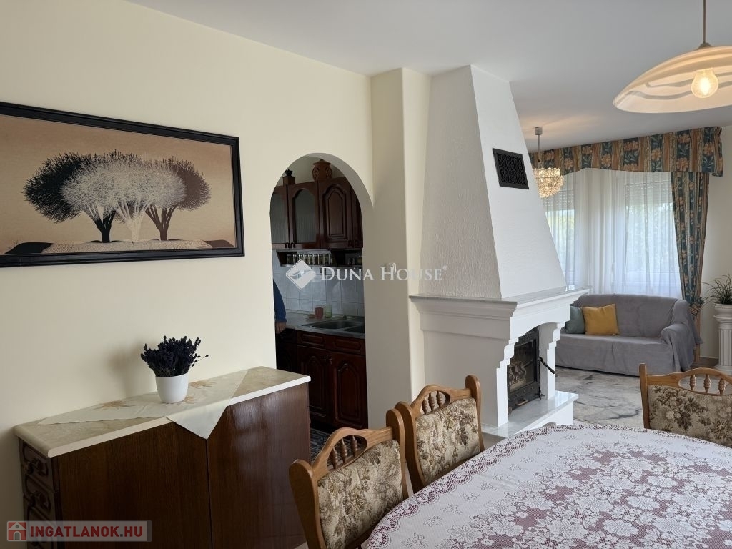 Pécs Rózsadomb városrészén, csendes és zöldövezeti környezetben kínálunk megvételre egy 2000-ben épült, kiváló állapotú, 135 m²-es családi házat 1034 m²-es gondozott telken.A felső szinten:Tágas, napfényes nappali hangulatos kandallóval, ahonnan közvetlen kijárat nyílik a teraszra, lenyűgöző panorámáva. Két külön nyíló hálószoba. Fürdőszoba káddal és zuhanyzóval, külön WC és bidé.Az alsó szinten:Egy további szoba, ami vendégszobaként vagy dolgozószobaként is funkcionálhatFürdőszoba WC-vel, tárolóhelyiség, valamint egy boltíves pince, amely ideális borospincének, zöldségek tárolására.A 16 m²-es garázs az épület része, a kertben található egy különálló, 18 m²-es kis ház villannyal, mely tökéletes lehet műhelynek, nyári konyhának.A ház fűtését gázcirkó rendszer biztosítja, de a kandallóval kiegészítve igazán otthonos légkört teremt a téli hónapokban is.Elhelyezkedése kiváló buszmegálló mindössze 5 perc sétára található, így a belváros gyorsan és kényelmesen elérhető.Ez az ingatlan ideális választás azok számára, akik természetközeli, nyugodt környezetben szeretnének élni, mégis közel a város szívéhez.Bővebb információért, megtekintésért várom hívását!