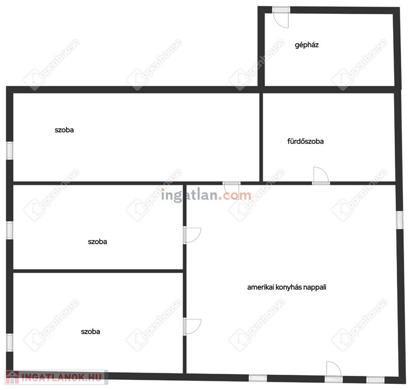 A házba lépve egy tágas, világos konyha-étkező fogad, amely ideális központja lehet a családi életnek. Innen nyílik három külön bejáratú szoba, valamint a fürdőszoba. Az elrendezés praktikus, jól bútorozható, élhető tereket biztosít.