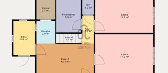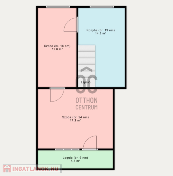 Emelet (nettó 46 m², bruttó 65 m²): 2 szoba, konyha, erkély