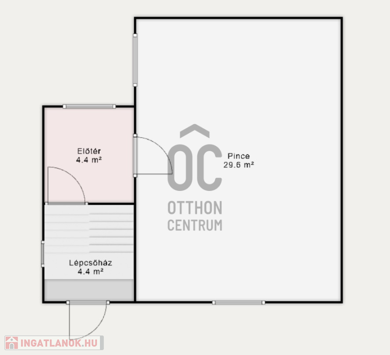 Pinceszint (34 m²): előtér, kazánház (vegyes tüzelésű kazán)