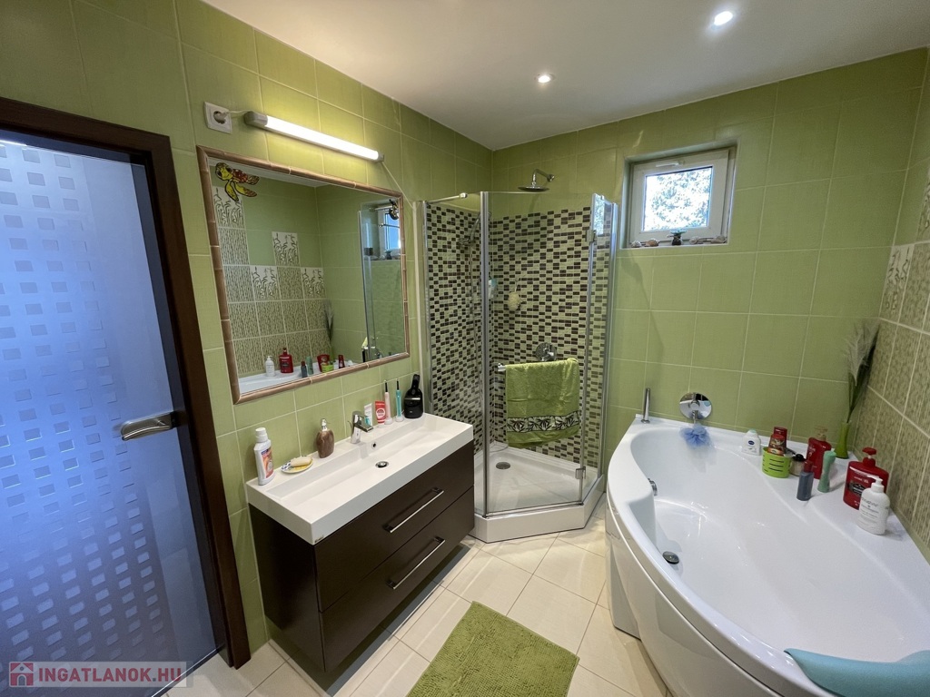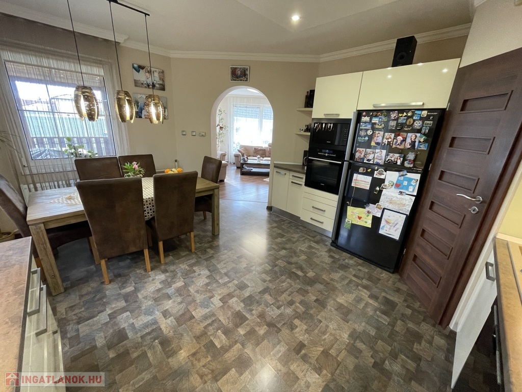 A ház műanyag nyílászárókkal felszerelt, egyedi gázfűtéssel rendelkezik, melyet kandalló egészít ki. A kellemes hőmérsékletről klíma gondoskodik. A helyiségek burkolata járólap és laminált padló kombinációja. A beépített, gépesített konyha a vételár részét képezi. Az ingatlan riasztórendszerrel ellátott.