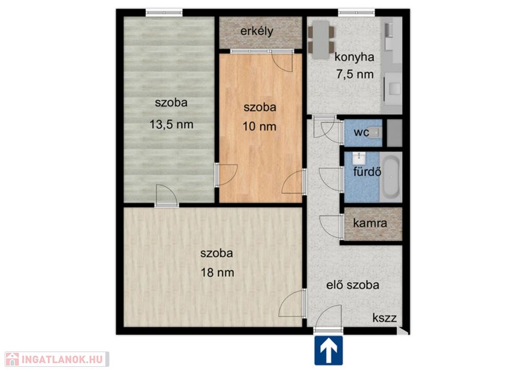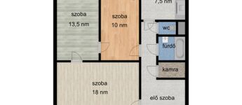 - 3 szoba,konyha.fürdő,WC,erkély,négyméretű előszoba,kamra.