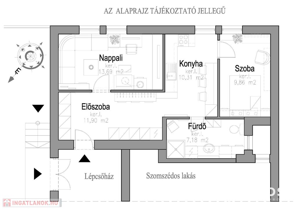 - Lakás: ~ 53 m2 (lásd: alaprajz )