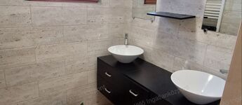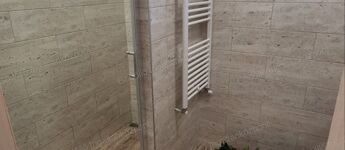 - épített zuhanyzós fürdőszoba kialakítása duplamosdóval,
