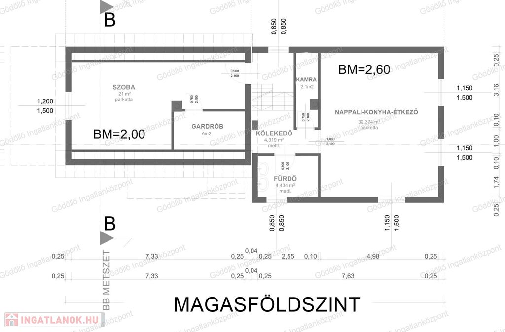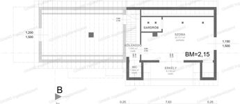 Kialakításra került benne előtér, nappali-konyha-étkező, kamra, 3 szoba, gardrób, két fürdőszoba, két wc, mosókonyha, hobbihelyiség, kazánház, tároló és 16nm garázs. Teraszai 15 és 17nm-esek.