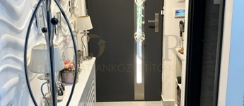 • Elektromos nagykapu és közös szorgalmi út vezet a szekcionált, motoros, hőszigetelt garázskapun keresztül a házhoz.
