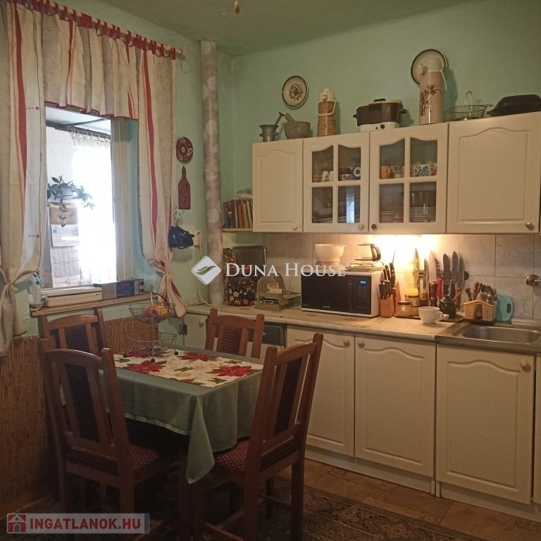 Eladó egy 77 nm-es, téglaépítésű családi ház Zalaegerszeg Bazitai városrészében. Az 1950-es években épült ingatlan eredetileg egy lakószoba, konyha, kamra, fürdő wc-vel, és egy kisebb pincevel kínált kényelmet lakói számára, mely később egy további szobával bővült.A jelenlegi tulajdonosok 2003 óta gondoskodnak az ingatlanról. Bevezetésre került a gáz, amely a cserépkályhák mellett gázkonvektorokkal biztosítják a ház melegét. Ebben az időszakban a tetőszerkezet is átvizsgálásra került, és ahol szükséges volt, új lécek kerültek a cserép alá, melyeket tisztítást követően viszaraktak. A hátsó szoba padlására üveggyapot szigetelést helyeztek el, továbbá az utcai szoba ajzatszigetelést és új betont kapott.2010 és 2011 során a régi faablakok műanyagra lett cserélve, és a cserépkályhákat 2016-ban átrakatták. A telek egy része sík, ahol a lakóház és melléképületek helyezkednek el, a többi rész lejtős, tökéletes környezetet biztosítva 76 gyümölcsfának. A gyümölcsösben többféle alma, körte, cseresznye, meggy, őszibarack, és sárgabarack található, melyek kora tavasztól késő őszig gyümölccsel látják el a ház lakóit.Melléképületek is vannak a telken, egy különálló épületben egy régi kovács műhely található. Ezen kívül van egy aknás garázs, valamint egy szerszámos műhely, amelyben egy kemence is található.Amennyiben a fotók és a leírás alapján sikerült felkeltenem az érdeklődését, akkor az alábbi telefonszámon hívjon, s egyeztessük a megtekintés időpontját!