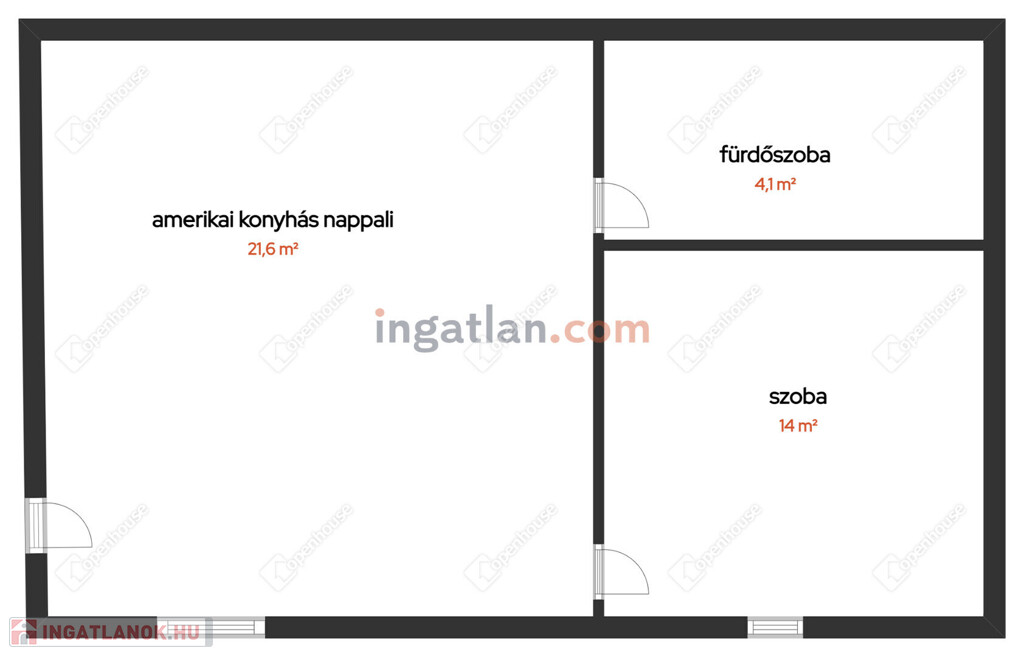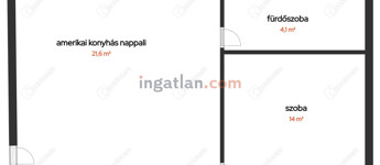 A lakótérben nappali, 1 szoba, amerikai konyha, zuhanyzós fürdőszoba, wc-vel található.