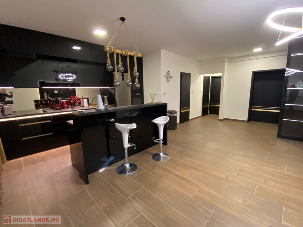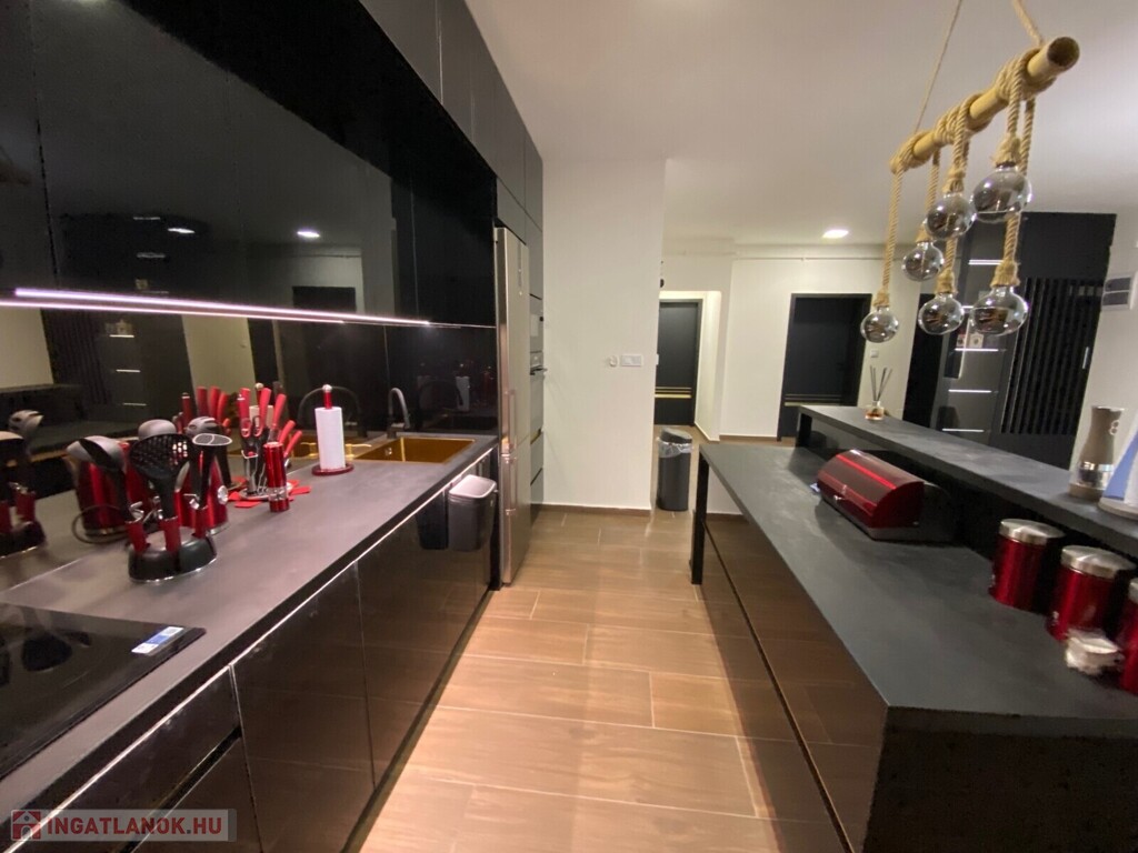 A lakás teljes körűen bútorozott, minőségi Bosch gépesítéssel felszerelt (mosogatógép, mosó-szárítógép).