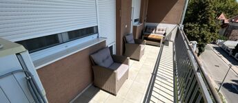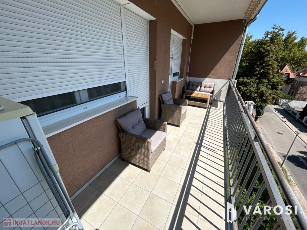 - 12 m²-es erkély, kerti bútorral felszerelve.