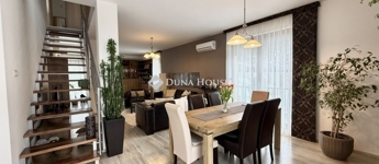 Családi ház hangulatú, tágas otthon eladó a csendes, zöldövezeti Donátusban!Pécs egyik legkedveltebb, panorámás részén, Donátusban, a Csoronika dűlőben kínálunk megvételre egy 2010-ben épült társasházi ingatlant, amely kialakításának köszönhetően teljes mértékben családi ház érzetét nyújtja ez a ritka kombináció igazán különlegessé teszi!A 124 m²-es, kétszintes, amerikai konyhás nappali + 4 SZOBÁS otthon ideális választás nagyobb családok számára is. Az ingatlan tágas, világos terekkel rendelkezik, kiváló elosztású és kertkapcsolatos.Alsó szint:-Tágas, napfényes amerikai konyhás nappali-Közvetlen kijárat a parkosított, kertre és fedett teraszra-Egy hálószoba, melyhez saját zuhanyzós fürdőszoba és WC tartozik-háztartási helyiségFelső szint:-3 külön nyíló szoba-Két szobából kijárat a 25 m²-es, panorámás teraszra-Fürdőszoba-Külön WCMűszaki jellemzők:-Kondenzációs gázkazános fűtés-Riasztórendszer-3 db klímaAz ingatlan csendes, nyugodt, kiváló donátusi környezetben található, gyönyörű panorámával tökéletes választás azok számára, akik természetközeli, mégis városhoz közeli otthont keresnek.Igény esetén megvásárolható egy önálló, 17 m²-es garázs, melynek ára: 10.000.000 Ft.Ha egy családi ház hangulatát keresi, de társasházi környezetben, ezt az ingatlant mindenképpen érdemes megtekinteni!