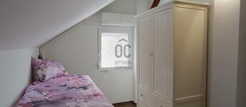 - emelet helyiségei: 1 hálószoba, hatalmas nappali, gardrób, közlekedő, fürdő-WC, gyerekeknek játszó galériás szoba- össz 47 m2