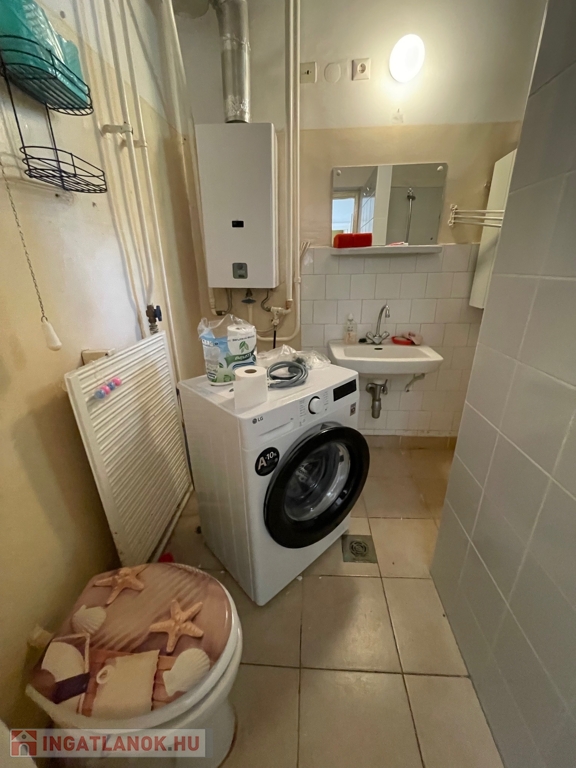 Az ingatlan eredeti fa nyílászárókkal rendelkezik, burkolatai parketta és járólap. Fűtéséről egyedi gázfűtés gondoskodik. A fürdőszoba és a mellékhelyiség egy légtérben található, ahol egy praktikus, épített zuhanyzó került kialakításra.