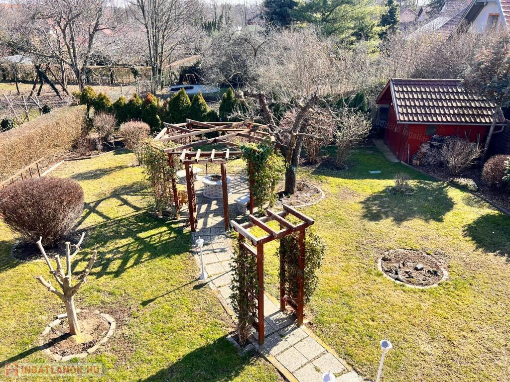 Gyönyörű, gondozott telken fekvő 2 szintes családi ház, amely 2 önálló lakásként funkciónál jelenleg is. A ház alatti szuterénben (59 m2) garázs, kazánház, kis raktár/műhely áll rendelkezésre. A kertben fedett terasz, virág lugas és még egy kis faház szolgálja a kényelmet, a pihenést.