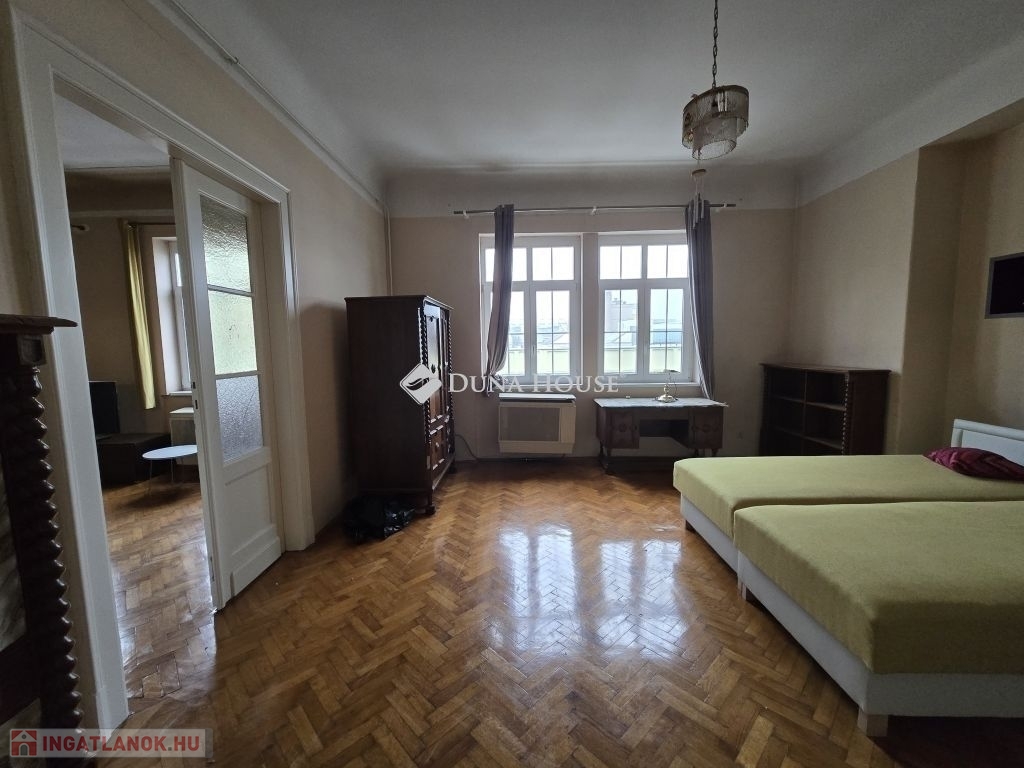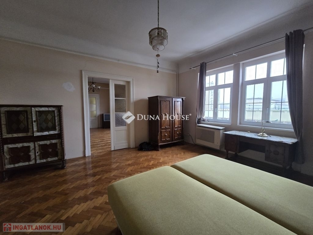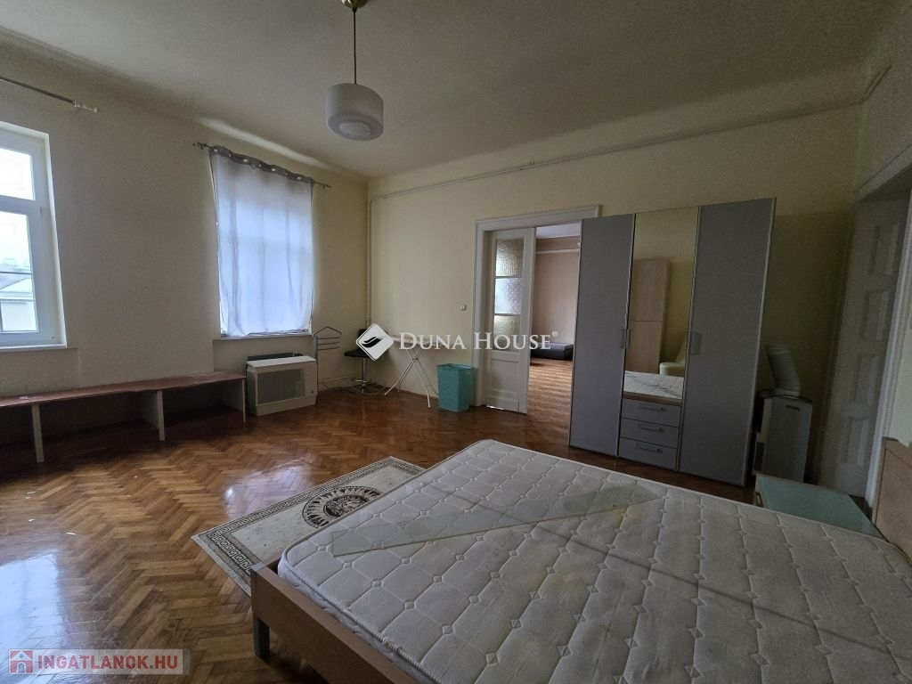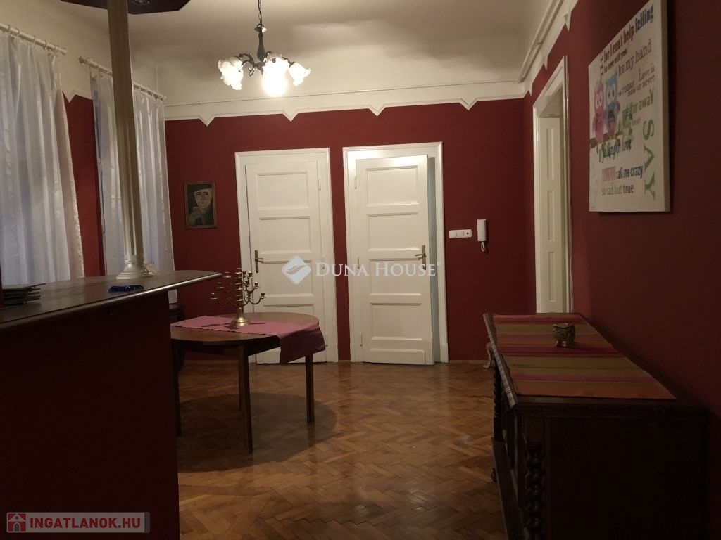 Eladó nagypolgári lakás Pécs belvárosának központjában!Pécs belvárosának szívében kínálom megvételre ezt a 138 m²-es, nagy terekkel rendelkező, világos nagypolgári lakást egy mindössze nyolc lakásos társasházban. A közel 3,2 méteres belmagasság és az eredeti parketta igazán impozáns hangulatot ad az ingatlannak.A lakás három, egyenként közel 30 m²-es, utcára néző nagy szobából áll, amelyek egymásból is nyílnak, de külön is megközelíthetők. A tágas hall többféle funkcióra alkalmas (nappali, dolgozó vagy központi élettér), emellett nagy méretű konyhaétkező, egy kisebb szoba (korábban cselédszoba), fürdő WC-vel, külön vendég wc, előtér és egy kis erkély is tartozik a lakáshoz.Az ingatlan költözhető állapotú,műanyag nyílászárós jelenleg gázkonvektoros fűtésű, világos és jó elosztású. A klasszikus nagypolgári hangulat és a hatalmas terek kiváló alapot nyújtanak egy igényes felújításhoz, amelyből egy igazán elegáns, belvárosi otthon alakítható ki.Ideális választás nagyobb családoknak, tágas, jól alakítható lakást keresőknek vagy azoknak, akik a belváros központjában szeretnének egy különleges hangulatú ingatlant.A lakáshoz tartozik még egy tároló, közös padlástér és a belső udvarban egy saját gépkocsiparkoló.A lépcsőház tiszta, rendezett a lakóközösség kiváló. Az ingatlan tehermentes, gyorsan költözhető.További kérdéseivel és személyes megtekintésért várom hívását!