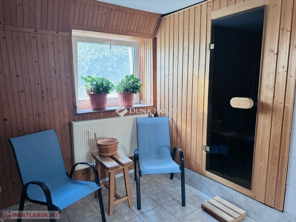 Pécs Tettye sétány közelében, csendes, közkedvelt utcában, kiváló adottságú családi ház eladó!Pécs egyik legkedveltebb részén, a Tettye sétánytól mindössze 5-6 perc sétára, nyugodt, rendezett utcában eladóvá vált egy 1992-ben teljes körűen újjáépített, kiváló adottságokkal rendelkező, belső kétszintes családi ház.Az ingatlan 813 m²-es telken helyezkedik el, amely ideális méretű, jól használható kertet biztosít.Főbb jellemzők5 cm homlokzati szigetelés15 cm tetőszigetelésMinőségi BRAMAC tetőMűanyag nyílászárók3 db nagy teljesítményű hűtő-fűtő klíma (2 a földszinten, 1 az emeleten)Junkers vegyestüzelésű kazánCirkó kazánHáromfázisú áramVezetékes víz a melléképületben isBelső elrendezésAlsó szint:Tágas, világos konyhaétkezőNagyméretű nappaliFürdőszobaKülön WCElőszobaFelső szint:4 külön nyíló hálószobaEgy központi, tágas nappali térből nyílvaKülön fürdőszobaKülön WCAlagsor / szuterinSzaunaZuhanyzóKülön WCGépészeti helyiségMelléképület extra lehetőségekkelA telken található egy fűthető melléképület, amely:külön lakrésszé alakítható (kétgenerációs megoldás), irodának / üzlethelyiségnek is alkalmas, vállalkozási célra kiváló.A háromfázisú áram és a víz rendelkezésre állása miatt a lehetőségek széles skálája adott.ParkolásAz utcafronton található garázs akár két autó számára is kényelmes beállást biztosít.ElhelyezkedésTettye sétány 5-6 perc gyalogCsendes, rendezett, értékálló környékKiváló infrastruktúraPanorámás elhelyezkedés, amely minden évszakban különleges hangulatot biztosítEz az ingatlan ideális választás lehet:nagycsaládosoknak, kétgenerációs együttélésre, vállalkozóknak, befektetésre.