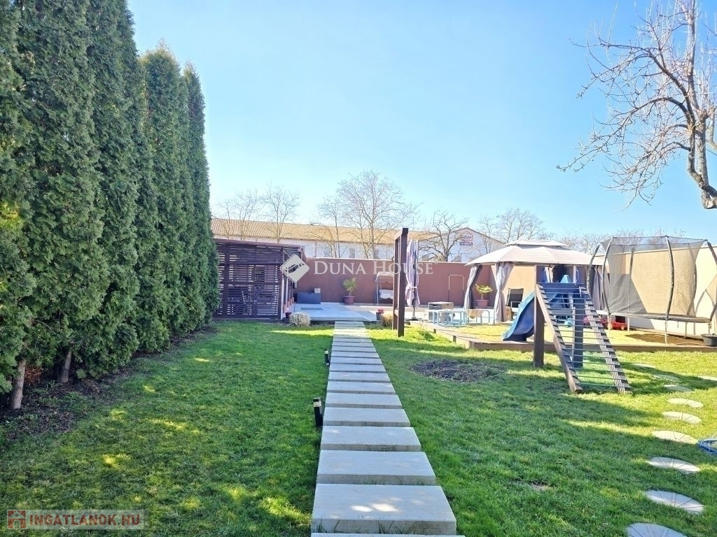 MEDENCÉS CSALÁDI HÁZ!!! Pécs gyárvárosi részén eladó egy pár éve teljeskörűen felújított, nettó 100 nm alapterületű, 2 szintes, jelenleg amerikai konyha-nappali+ 4 szoba elosztású, sok extrával felszerelt, gáz kazánnal fűtött, klímás, tégla családi ház, épített medencével, nyári konyhával, 160 nm-es műhely garázzsal, alagsori tárolókkal, duplagarázzsal, térkövezett, udvari beálókkal, 1000 nm-es parkosított telken.Az ingatlant korszerűsítették és a következő extrákkal szerelték fel:- Új Medence 3,6x5,8 méretben- Homlokzaton 10 cm grafitos szigetelés- 22 m-es téglával körberakott, dupla aknás, elektromos bekötéssel rendelkező kút- Hörmann garázskapuk + motorok- 2 db hűtő-fűtő klíma- Gáz cirkó + vegyes tüzelésű & elektromos kandalló - padlófűtés és radiátorok- Ipari 8 cm-es térkő, 160 m2- új elektromos hálózat és vízvezetékek- Vízálló padló burkolatok- Kamera és riasztó rendszer- épített kerítés- Tető 2,5 éve új lécezést és vízzárást kapottA teljes berendezés külön alku tárgyát képezi!Az ingatlan cég telephelynek is kiválóan alkalmas, a lakóház részén ügyféltér és irodák kialakíthatók, udvarán 160 nm térkövezett parkoló, 160 nm műhely és 2 állásos garázs is megtalálható!I.ár: 129,9M Ft