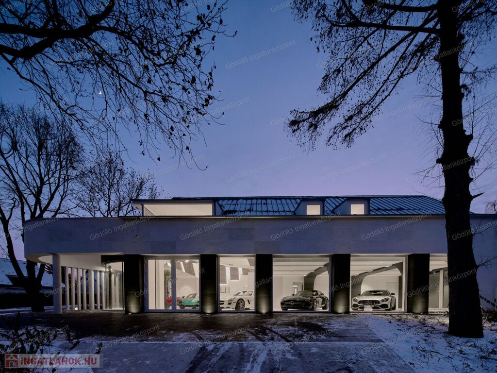 A telken emellett található egy nagy méretű, kiváló állapotú garázsépület is, amelynek födémére korábban egy háromszintes idősek otthonát terveztek építeni. Az ehhez kapcsolódó dokumentációk az építési hatóságtól bármikor beszerezhetők, a fennmaradási engedély pedig gond nélkül pótolható.
