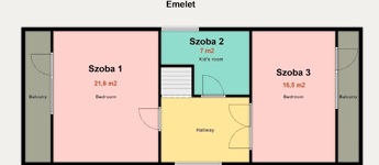 - Szobák: 3 + nappali