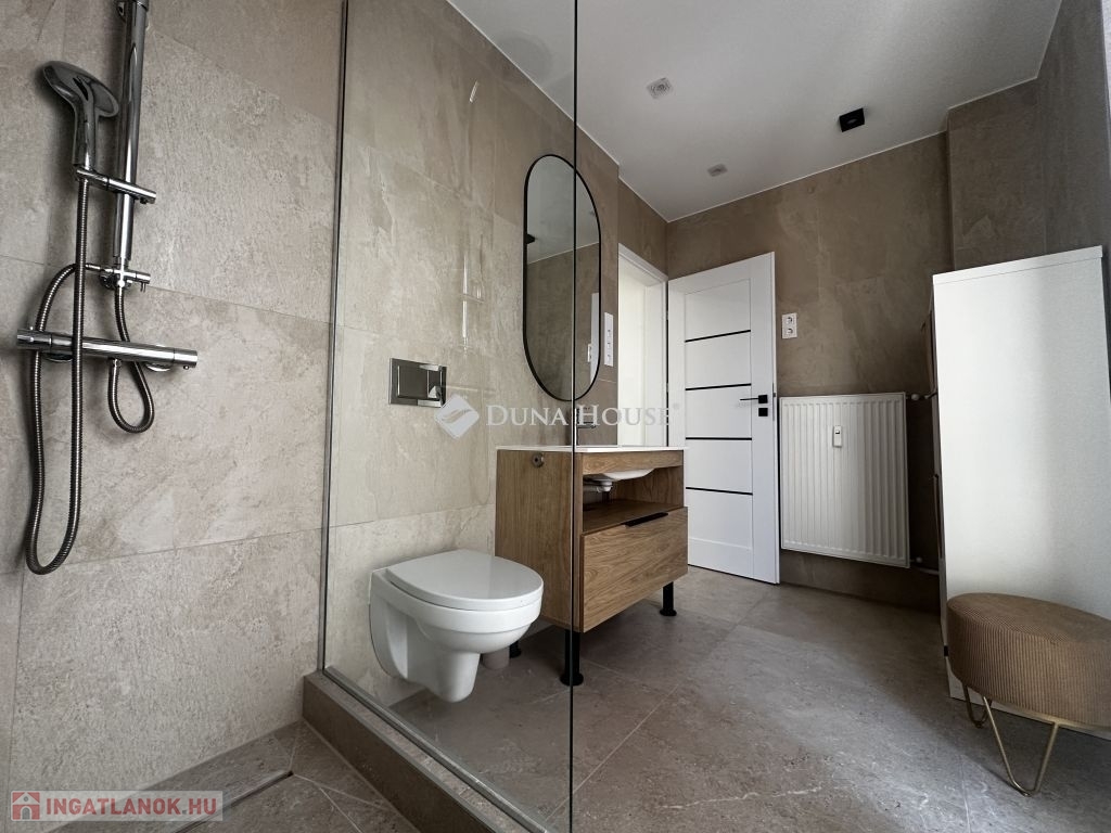 Exkluzív, teljeskörűen felújított lakás Pécs belvárosában befektetőknek és saját otthonnak egyaránt!Eladásra kínálok egy 64 m²-es, 7. emeleti, teljeskörűen felújított lakást Pécs szívében. Az ingatlan minden részletében igényesen átalakított, így modern, kényelmes otthont biztosít új tulajdonosának.A lakás jellemzői: új víz- és villanyvezetékek, álmennyezeti LED lámpák modern hangulatvilágítással, asztalos által készített, gépesített, egyedi konyhabútor, teljesen felszerelt és bútorozott állapot, 3 klíma a tökéletes hőérzetért, tágas, világos terek, minőségi burkolatok.A belvárosi elhelyezkedésnek köszönhetően minden fontos szolgáltatás, bolt, étterem és közlekedési csomópont könnyedén elérhető.