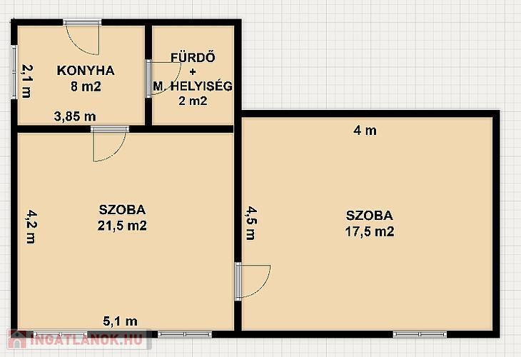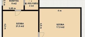2 szoba, konyha, zuhanyzós fürdőszoba + wc