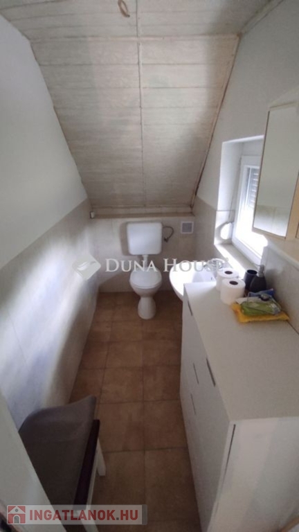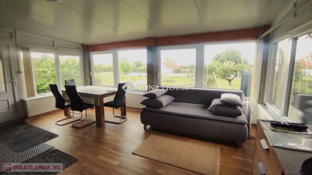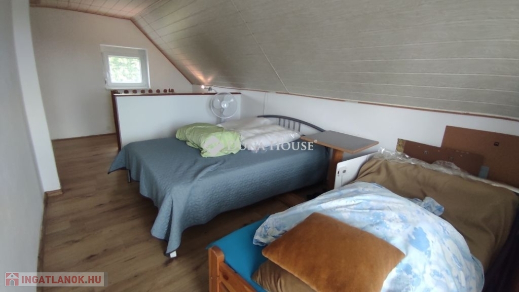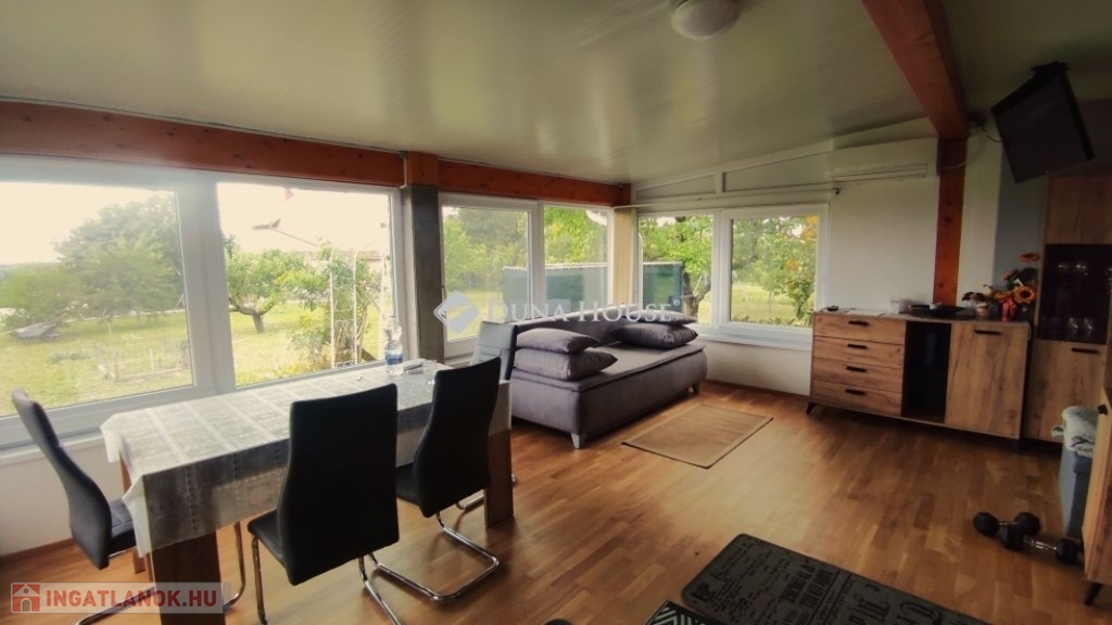 Mohácson a szőlőhegyen ház eladó!Dél-Baranyában Mohács közelében eladó ez a bájos kis nyaraló. Tulajdonosai amikor 20 évvel ezelőtt megvásárolták ezt a házat, hozzépítettek egy 24m2-es nappalit. Ez a helyiség adja meg az egész ház hangulatát. Nagy üveg tolóablakai télen-nyáron biztosítják a kitűnő fényviszonyokat. Innen nyílik egy újabb szoba, konyha, fürdő wc-vel. Ezek a helyiségek vannak a földszinten és ha felmegyünk a falépcsőn a tetőtérben még két szoba található. Mindkettőből ajtó nyílik a fenti teraszra. Az 5m2-es szép kilátásunk van az udvarra, és a távoli Dunára is. Az északi oldalon az utca felől beállhatunk az a fedett garázsba ami közvetlen a ház falához csatlakozik. A ház téglából épült, és szigetelt. A tető cserépfedéses, illetve a hozzáépítésnél szigetelt lemezfedéssel oldották meg. A nyílászárók műanyagok ,a burkolatok a földszinten kerámia, az emeleten pedig laminált padló. Fűtését egy kandalló biztosítja. Az ingatlan jól megközelíthető télen-nyáron is. Ha megtettszett vagy további kérdései lennének hívjon!