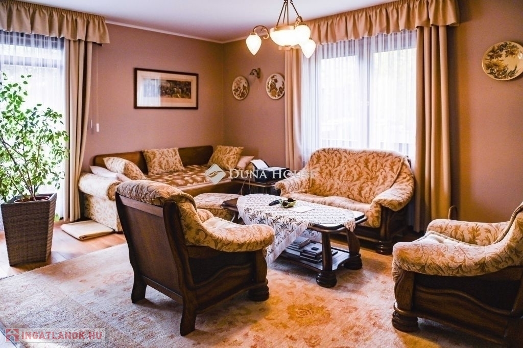 Csendes zsákutcában, rendezett környezetben eladó ez a különleges, több szinten elhelyezkedő, igényesen felújított családi ház. A tágas életterek, a panorámás terasz, a saját wellnessház és a külön bejáratú apartman olyan kényelmet biztosítanak, amely ritkaságnak számít a környéken. Tökéletes választás nagycsaládosoknak, több generáció számára vagy akár befektetésre is.