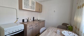 A lakás távfűtéses, kedvező elrendezésű, kényelmes ingatlan, a képeken látható bútorokkal, hűtőgéppel, mosógéppel, gáztűzhellyel felszerelve kiadó.