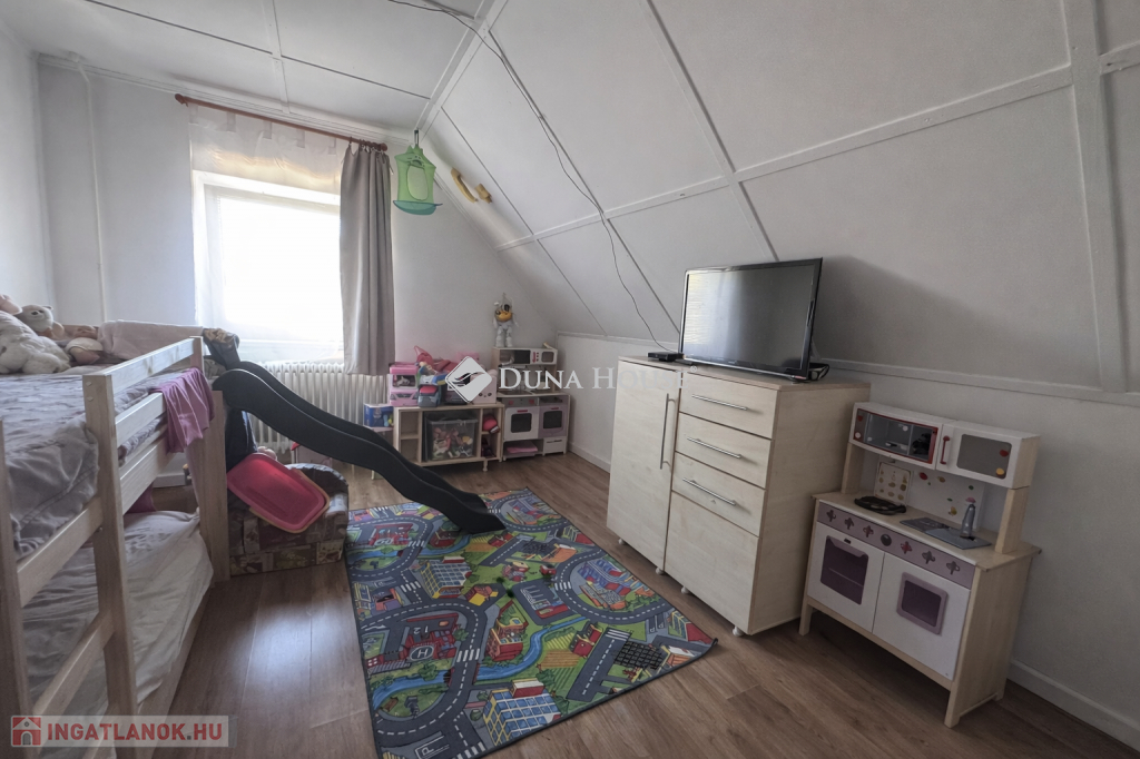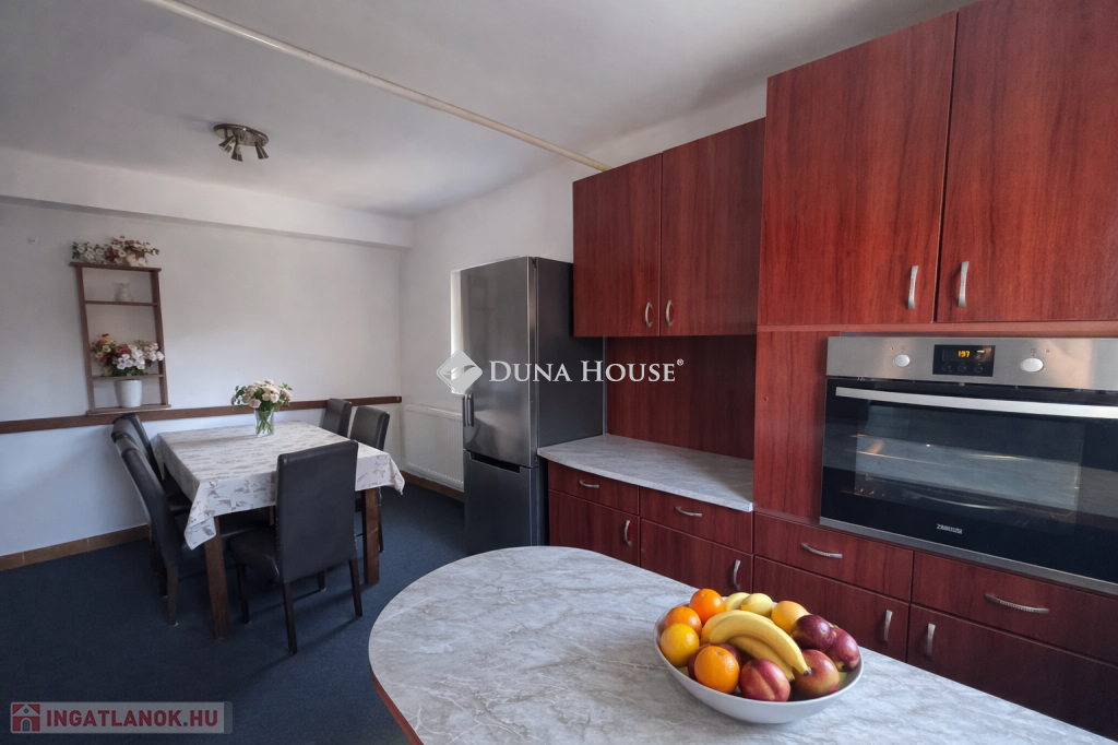 Pécs közkedvelt részén, Újhegyen eladó belső kétszintes családi ház!Pécs egyik kedvelt, csendes városrészében, Újhegyen eladóvá vált egy 1993-ban épült, 116 m² alapterületű családi ház, amely egy 944 m²-es, szépen gondozott telken helyezkedik el.Az ingatlan praktikus elosztásának köszönhetően ideális választás családok számára.A ház helyiségei: Alsó szint:előszobakülön WCkamrakonyhaétkezőtágas nappali Felső szint:fürdőszoba + WC3 külön nyíló szobaMűszaki jellemzők:Bramac cserépfedésműanyag nyílászárókgáz-cirkó kazán biztosítja a fűtéstmelegvíz ellátás villanybojlerrelA 944 m²-es telek rendezett, gyümölcsfákkal beültetett, kellemes kertkapcsolatot biztosít.A telken továbbá megtalálható:aknás garázsfedett kocsibeállókülönálló üzlethelyiség, amely igény esetén garzonlakássá is visszaalakítható, így akár többgenerációs együttélésre vagy befektetésnek is kiváló lehetőség.Ha egy jól alakítható, nyugodt környezetben található otthont keres, ez az ingatlan remek választás lehet! Amennyiben felkeltette érdeklődését, keressen bizalommal!