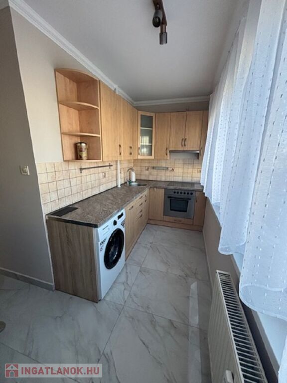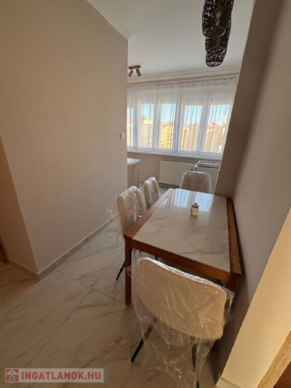 A lakás bútorozott, gépesített, mosogatógép, mosógép is van. A szobák külön nyílnak, klímával felszerelve. Fürdőszoba zuhanyfülkés, wc külön van. Központi mért fűtésű, alacsony rezsijű. Műanyag nyílászárók redőnnyel, szúnyoghálóval felszereltek. Nagyerkély tartozik hozzá. Lift nincs. Közös költség 15.000 Ft.