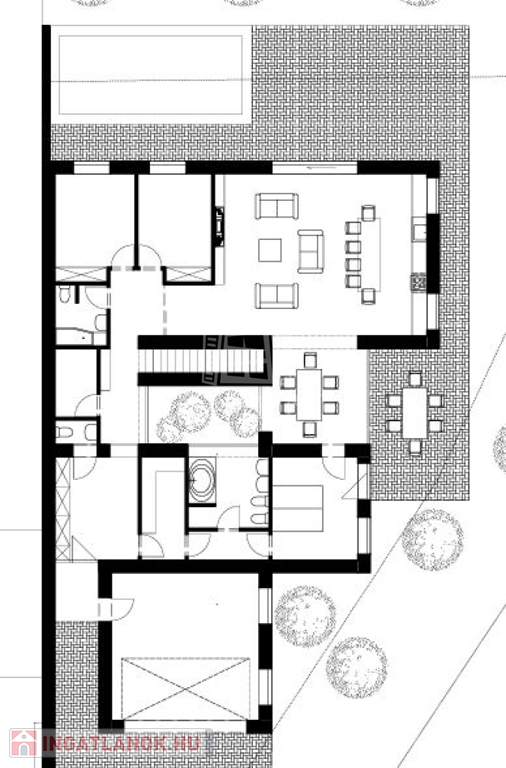 Az átrium ennek a villának a megálmodott extra része, egy különlegesség, nemcsak exkluzív látványt nyújt, hanem természetes fényt juttat az épület belső tereibe is.