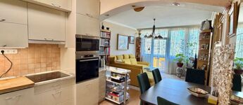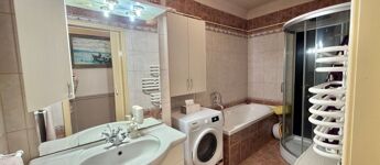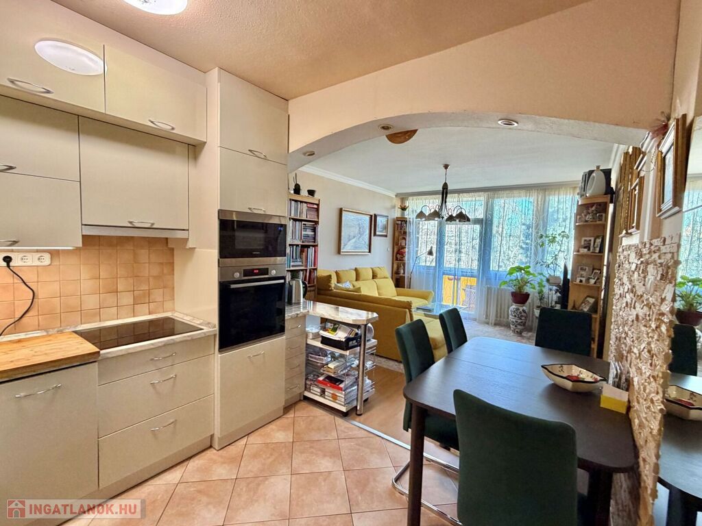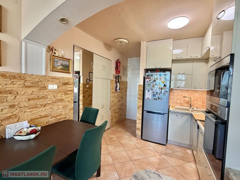 A lakásban 2 éve a konyhát felújították, új egyedi gépesített konyhabútor került beépítésre.