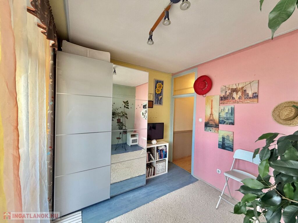 Az ingatlan tégla építésű társasház harmadik emeletén található, mért távfűtéses, klimatizált, műanyag nyílászárós, részben redőnnyel szerelve, laminált padló, járólap burkolatú, saját tároló, közös kerékpártároló tartozik hozzá.