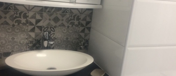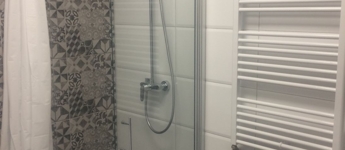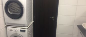 A fürdőszoba zuhanyzóval, káddal, mosó és szárítógéppel felszerelt, külön wc kézmosóval, a konyha elektromos főzőlappal és mosogatógéppel is ellátott.