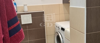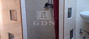 A fürdőszoba modern kialakítású, zuhanykabinnal, külön WC-vel, mosógép elhelyezési lehetőséggel.
