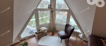 A nappaliban különleges kialakítású ablakok, reggeli kávéját napsütésben, a hangulatos nappali-konyhában élvezheti.