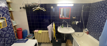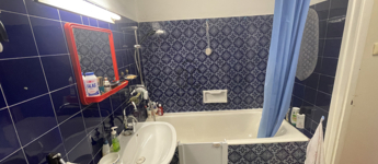 -fürdőszobában jelenleg kád van, de a teljes kiállás ki van építve egy zuhanyzónak is,