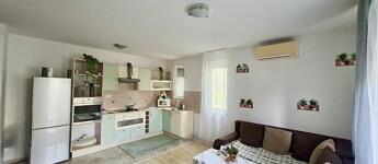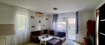 A nappaliból egy 22 nm-es, saját használatú, rendezett kertbe juthatunk ki, amely ideális pihenésre vagy akár baráti összejövetelekre is.