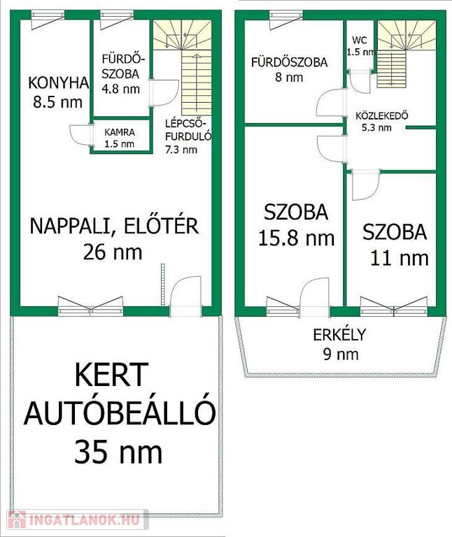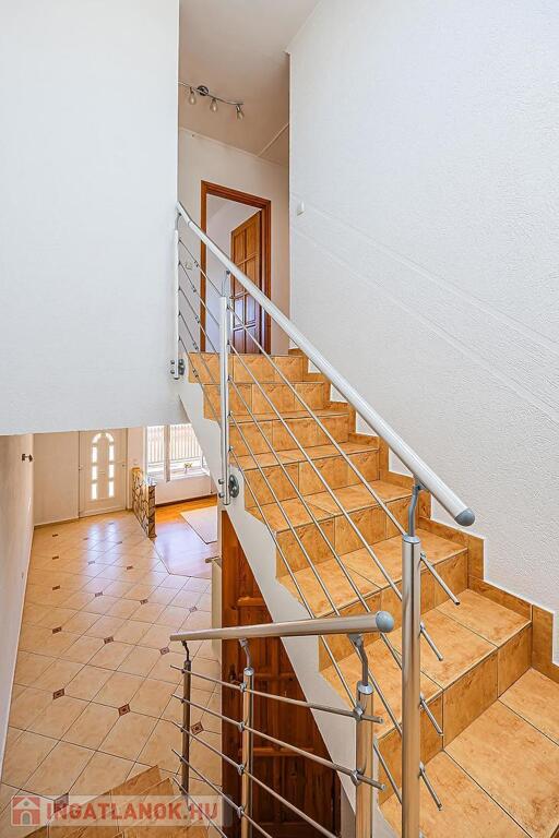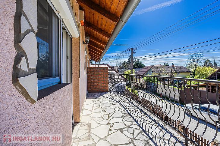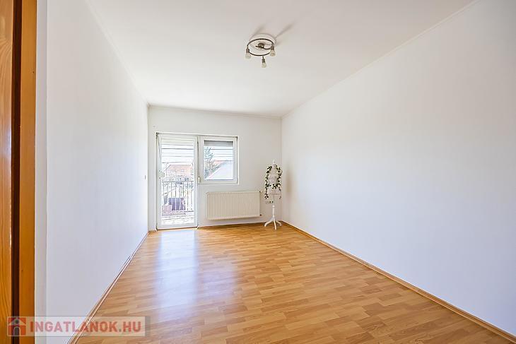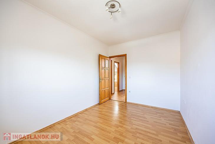 Belső két szinten, amerikai konyhás nappali saját kamrával, 2 db fürdőszoba és 2 db hálószoba van. A nagyobb szobából van kijárat a 9 nm-es nyugati fekvésű erkélyre.