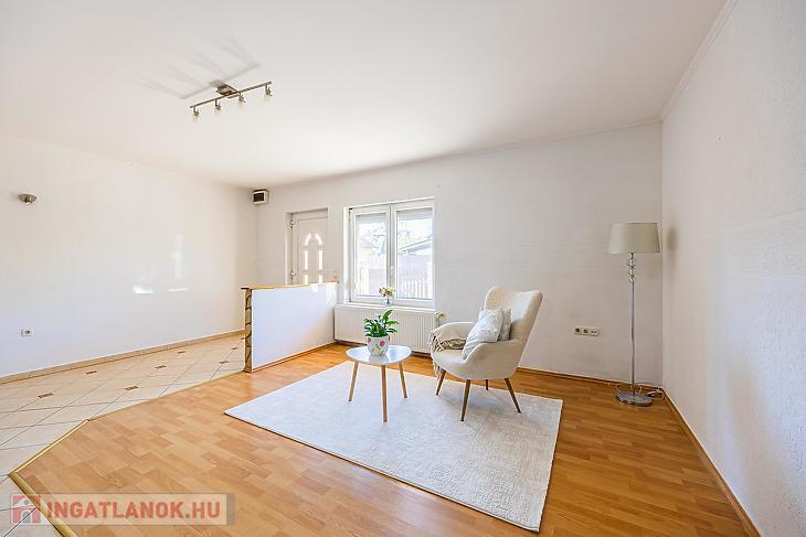 Dunakeszi központi részén, kis kertel, autóbeállóval rendelkező középső sorházi lakás eladó.