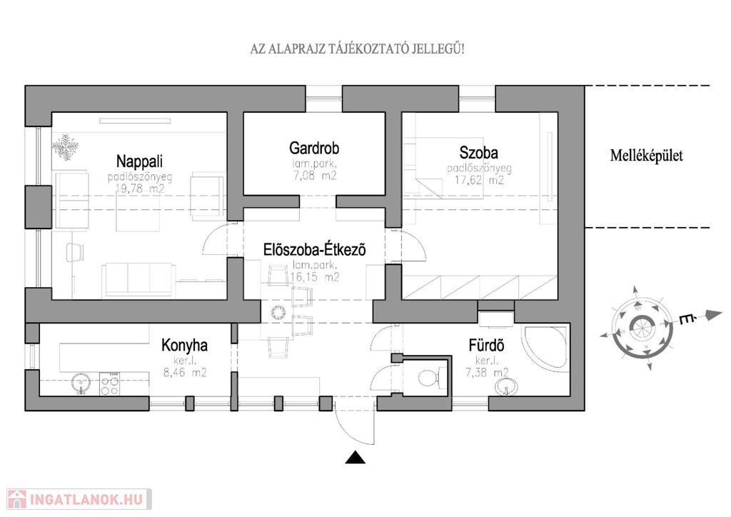 - Előszoba és Étkező : ~16,00 m2