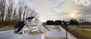 Játszótér, babaházzal, csúszdával, hintákkal, aszfaltozott görkorcsolya/roller pálya készült