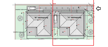 A ház egy másik házzal együtt, kerítéssel körbehatárolt, saját használatú telken fekszik, ami az építés befejezése után lesz majd igazán szép. Nem kicsi, hiszen 400 négyzetméteres terület jut egy-egy házhoz. Elég nagy, hogy kerti partikat rendezzenek rajta, vagy hogy elférjen egy medence is, de a család kedvenceinek is bőven jut hely.
