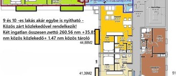A lakást egy 35,85 m²-es, zárt, kizárólagos használatú közlekedő kapcsolja a mellette lévő ingatlanhoz, amely elegáns, közös előtérként fogadja az érkezőket. Így a két külön bejáratú lakás külön is használható, mégis könnyedén egyetlen harmonikus egésszé alakítható.