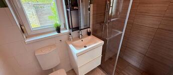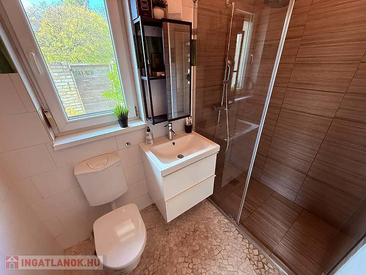 Az ingatlan praktikus elosztású: a földszinten előszoba, vendégfürdőszoba, egy tágas, étkezős konyha, nappali, valamint két szoba található, amelyekhez közvetlen kapcsolattal egy további fürdőszoba is tartozik. A konyhaból közvetlen kijárat nyílik a 35 nm-es teraszra, amely ideális helyszíne a pihenésnek vagy baráti összejöveteleknek.